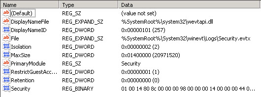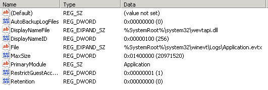 Further, to ensure that log files don’t explode, leverage the “AutoBackupLogFiles” property within the Application Events (you’ll have to add this to the Security and System Event Logs, simple DWORD property). Setting the value to “1” or any value other than “0” will create backup files in the file location specified.