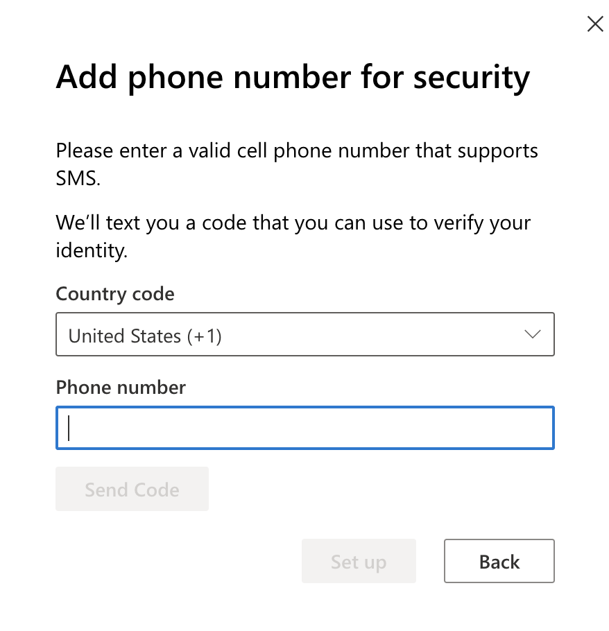 Like most Cloud providers, the preference is that Bots not be given the ability to provision resources in the Cloud so Microsoft performs a standard check to validate you are a person by sending a text message to you. You’ll be confronted with a page similar to this:
