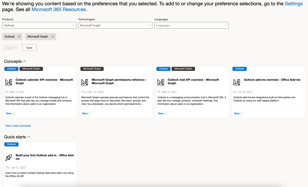 Microsoft has put together some quick start documents associated with the tenant based on parameters selected during the provisioning process. They’re pretty handy and even include a walk through of working with an Outlook Add-in.